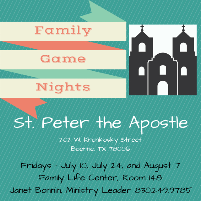 Parents, Young Kids, Tweens and Teens: Join us for some family fun this summer as we come together to enjoy playing board games! Our Families of the Way ministry is starting a new summer tradition that gives us the chance to come together for snacks, fellowship and fun! These are fun events for the whole family. Young children, Tweens and Teens – bring your parents! Other parishioners are welcome to join us! Bring your favorite age-appropriate board game and a light snack to share. (Games like Cranium Cadoo, Settlers of Catan, Scrabble, Yahtzee and Chutes and Ladders). Can’t think of a game? No problem – we’ll have some games to share.